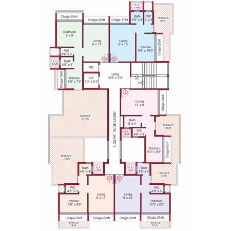 "24 * 24 " Flooring in all rooms 12x12 Flooring Bathroom,W.C. & Terrace