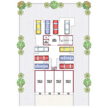All Electric point conceals copper Ploycab wiring with switches make Elmac or livon, or equivalent make ample light points in parking area